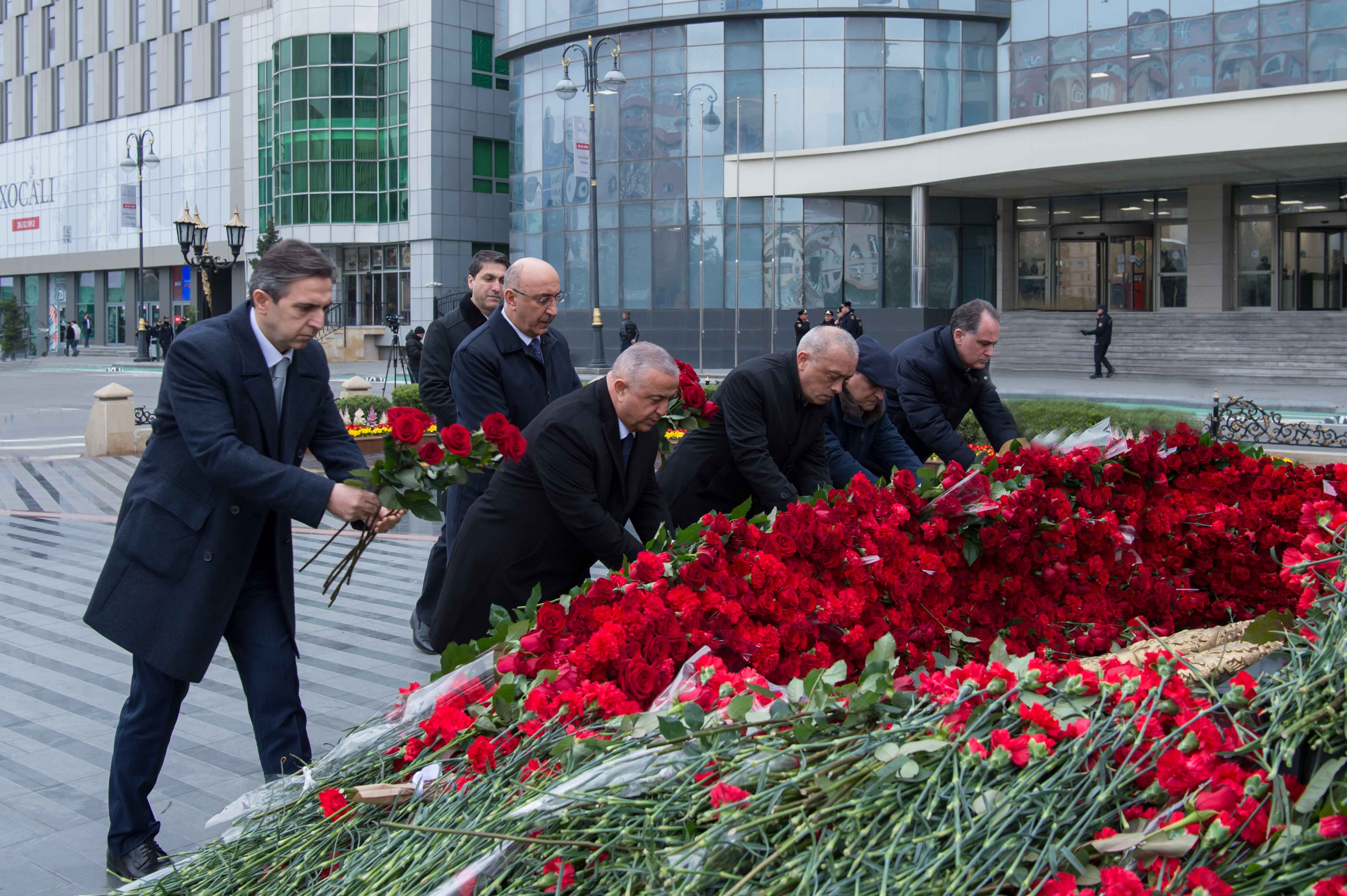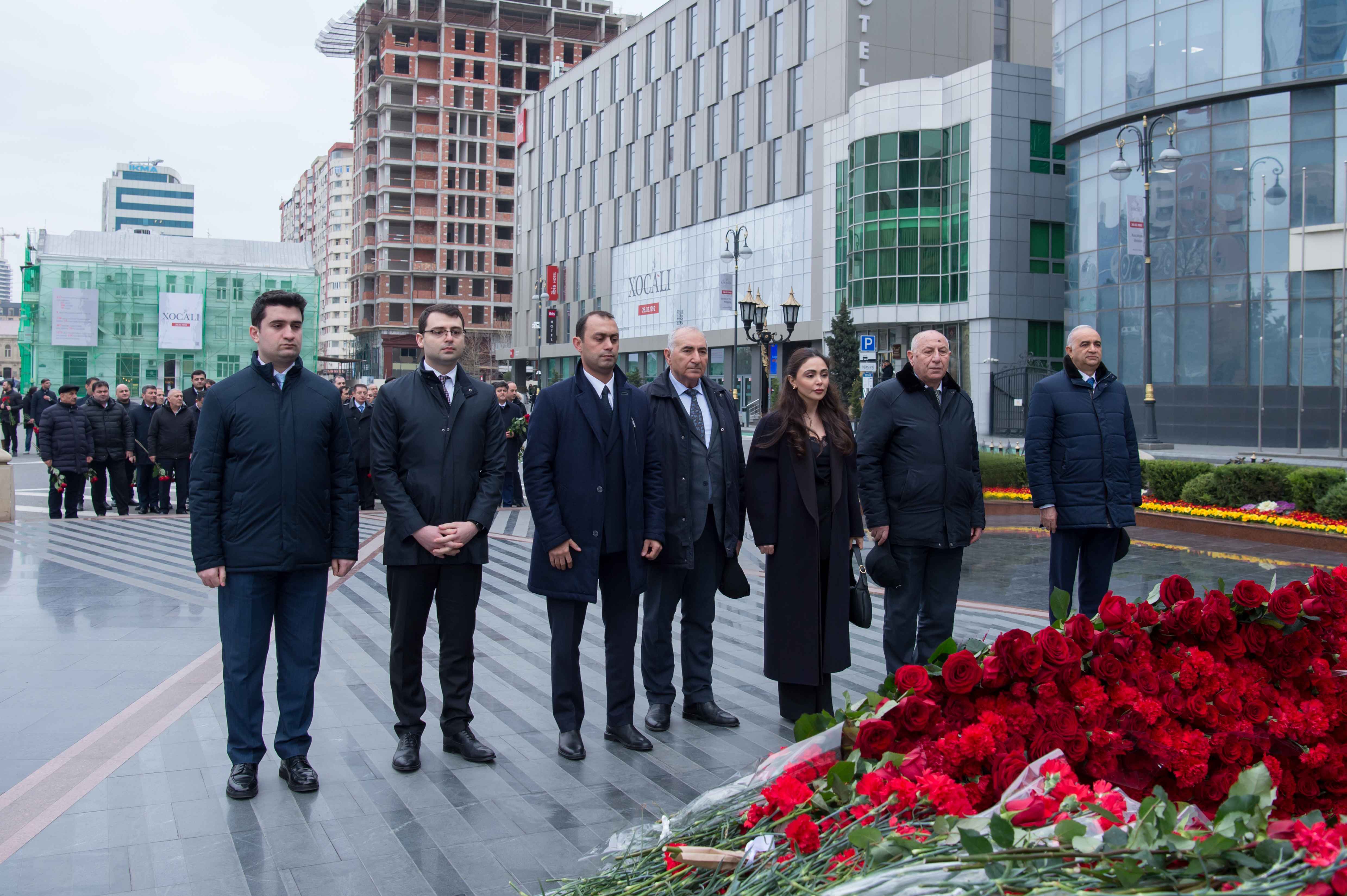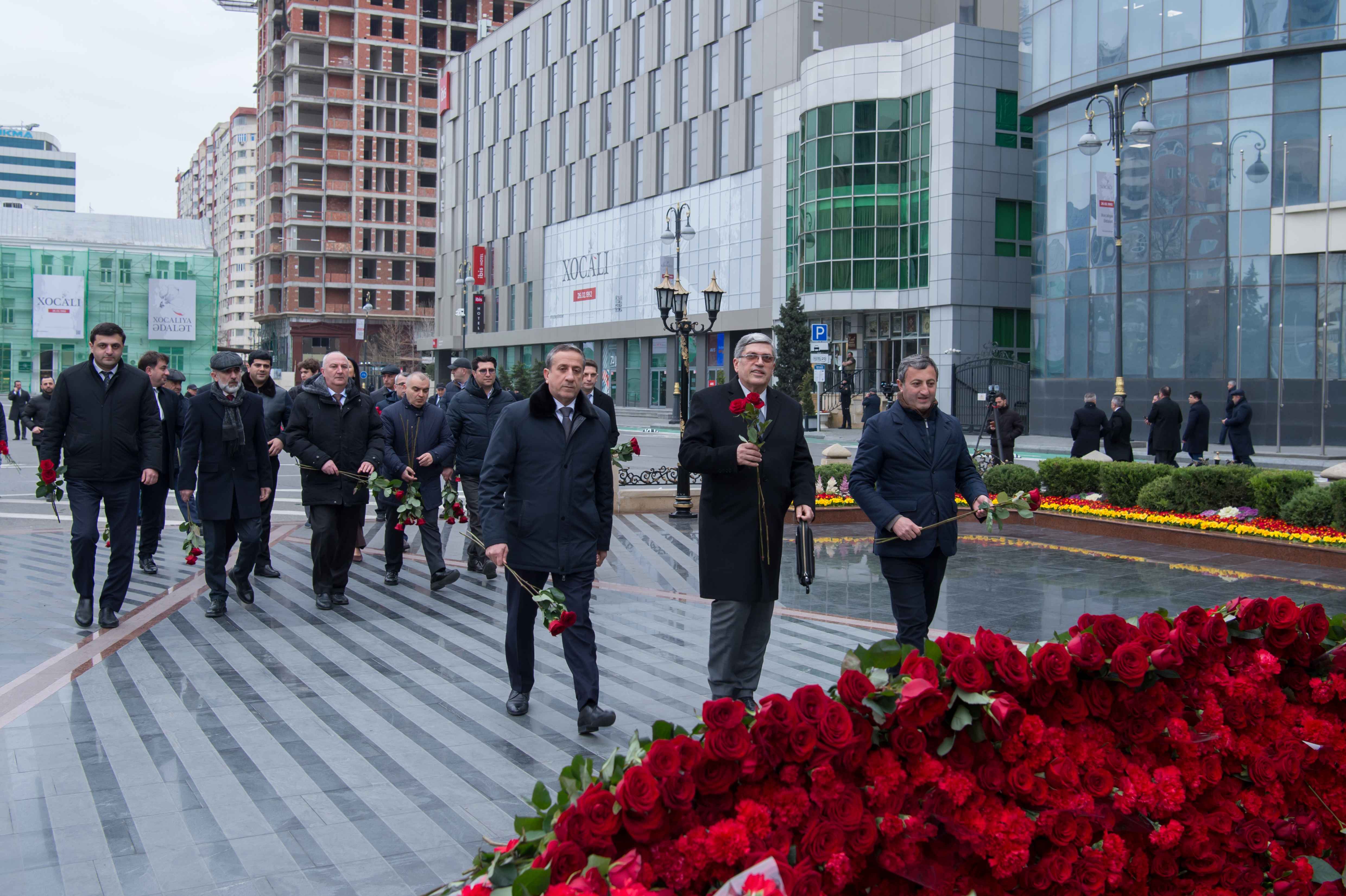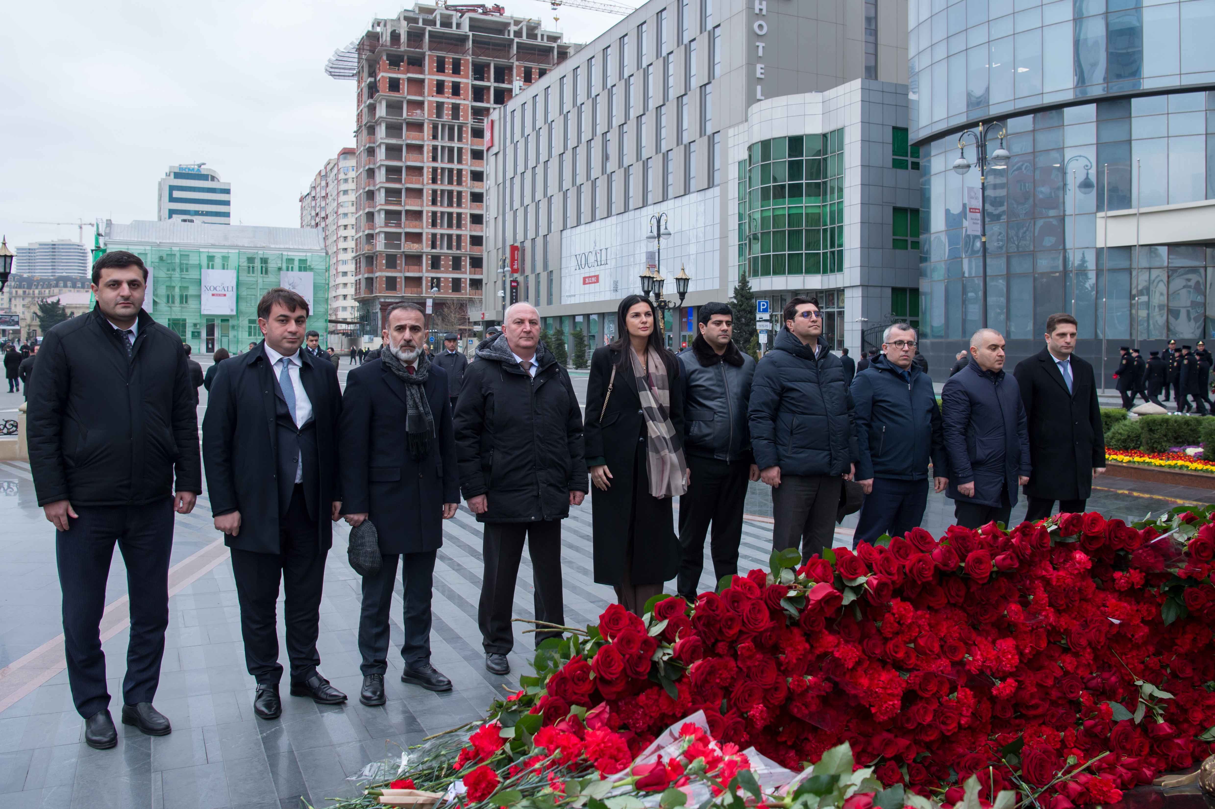 Ziyarət zamanı abidənin önünə gül dəstələri düzülüb, soyqırım qurbanlarının əziz xatirəsi ehtiramla yad edilib.