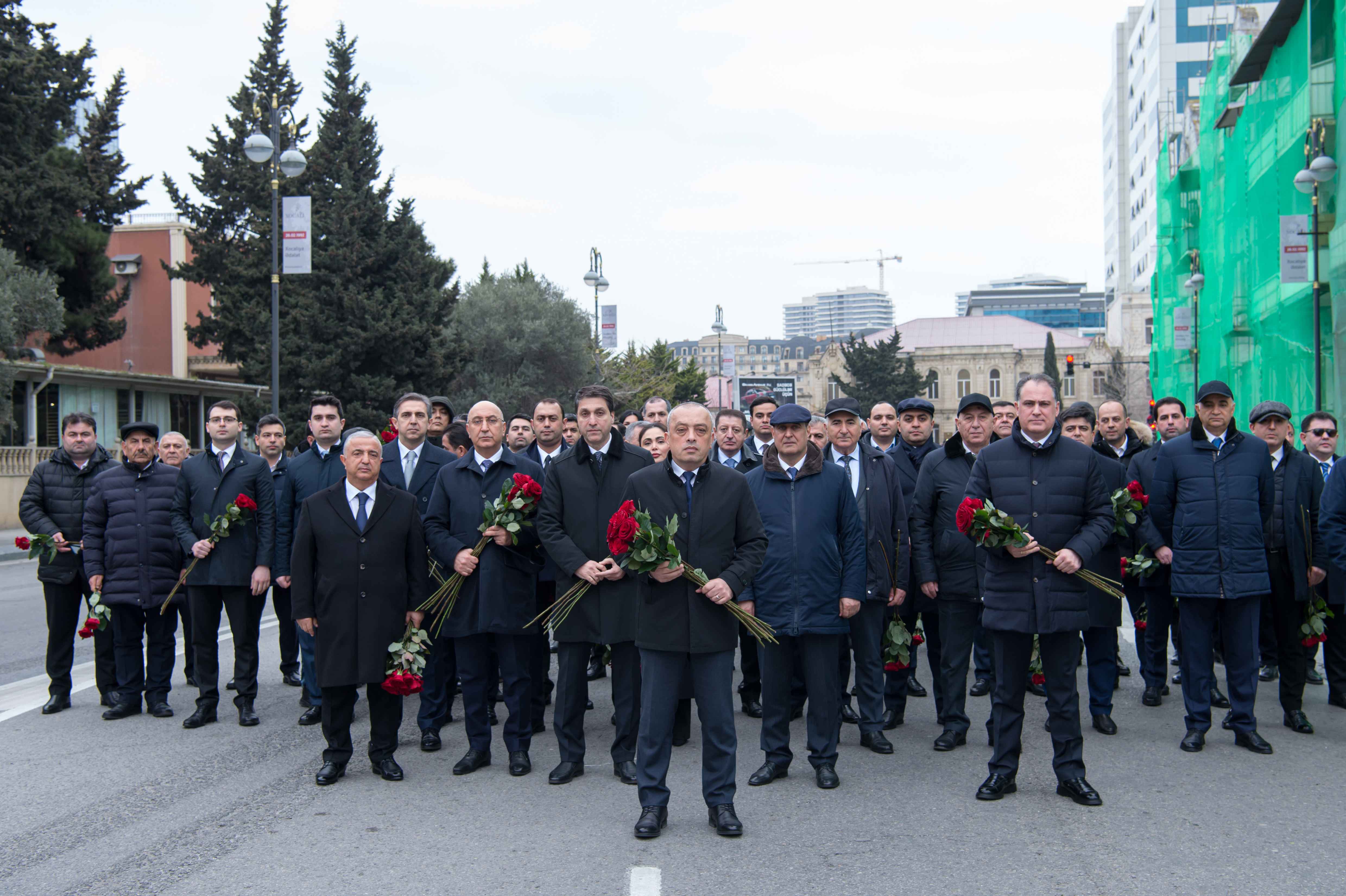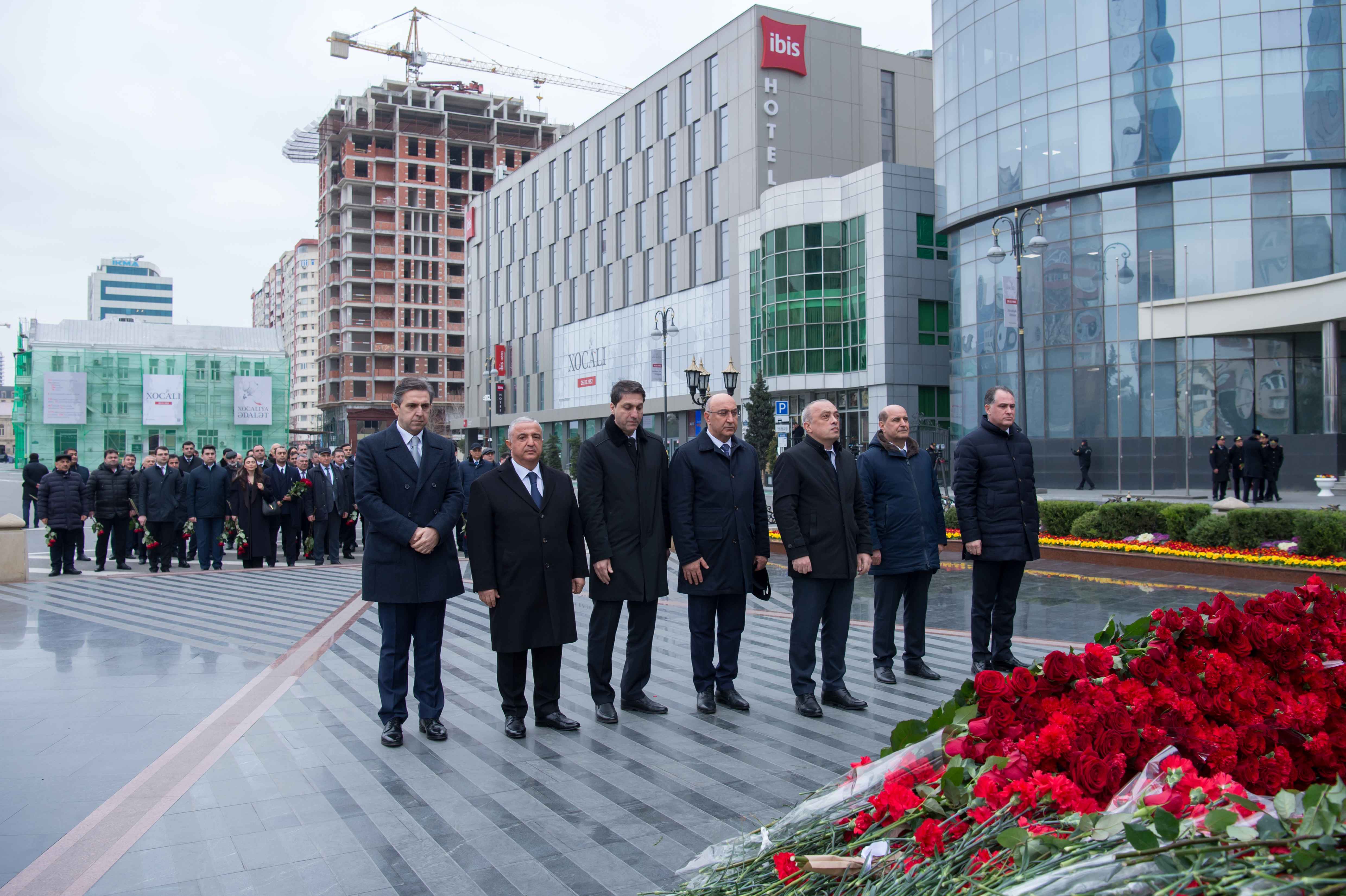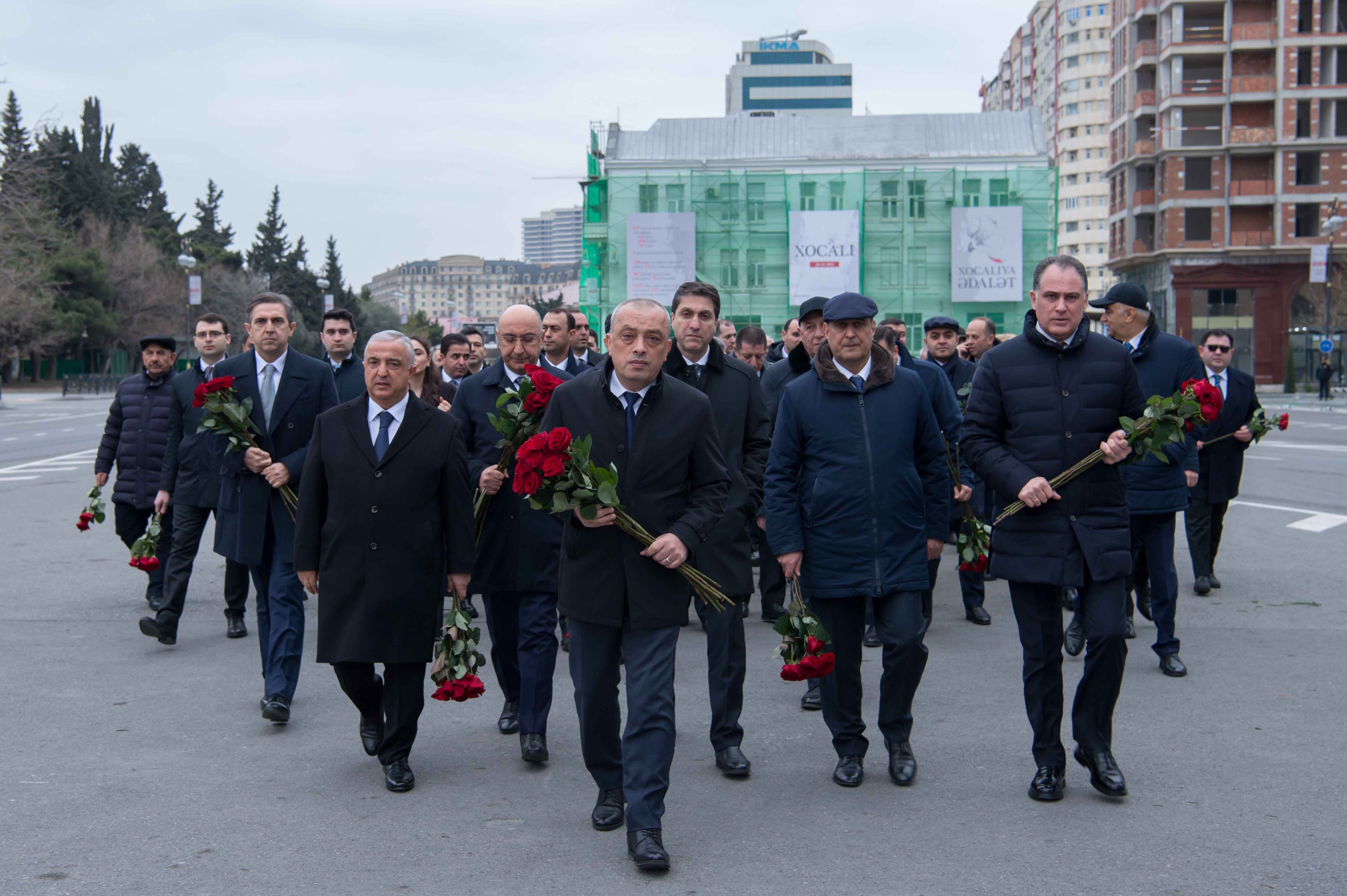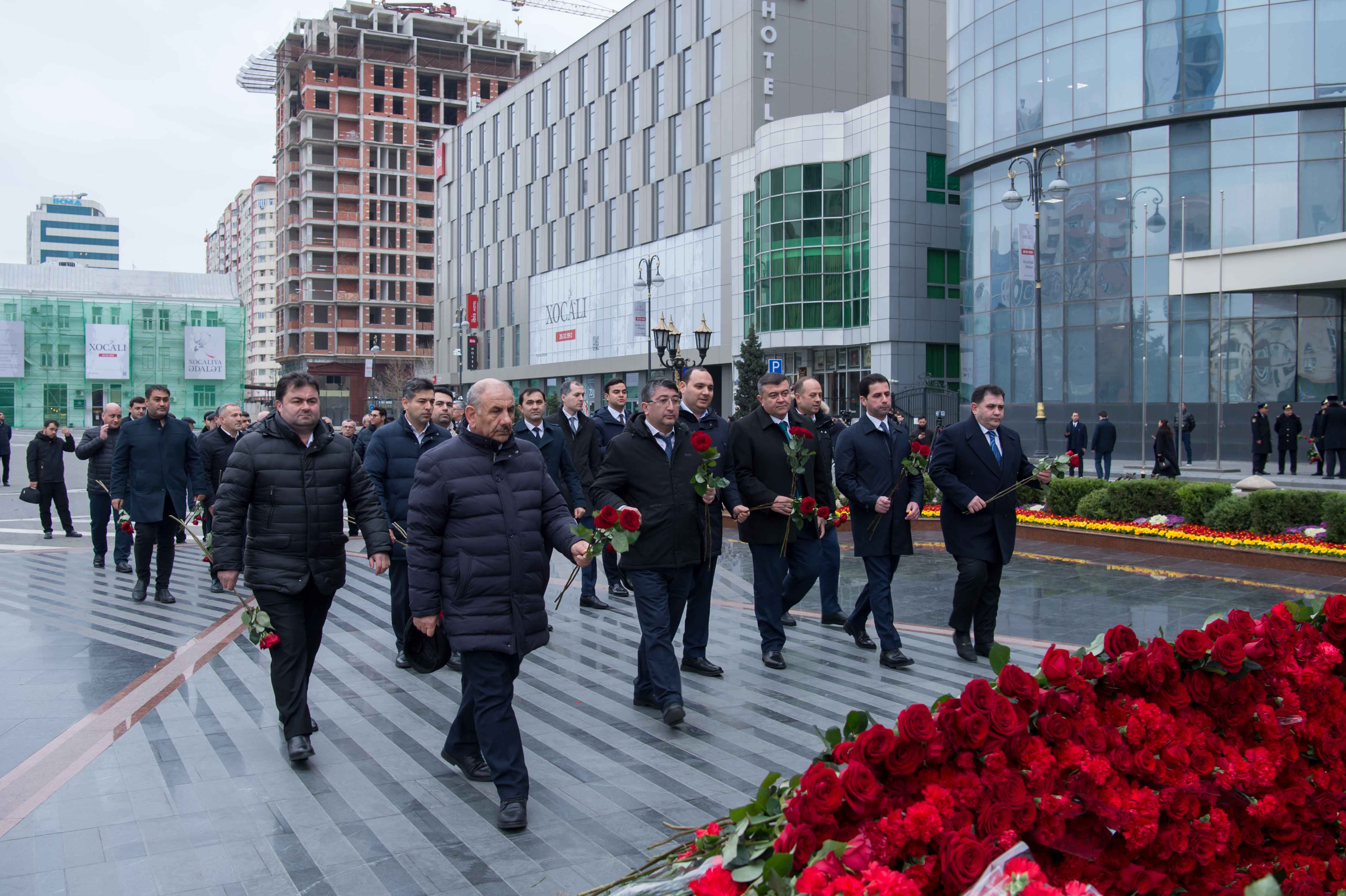 Ziyarət zamanı abidənin önünə gül dəstələri düzülüb, soyqırım qurbanlarının əziz xatirəsi ehtiramla yad edilib.