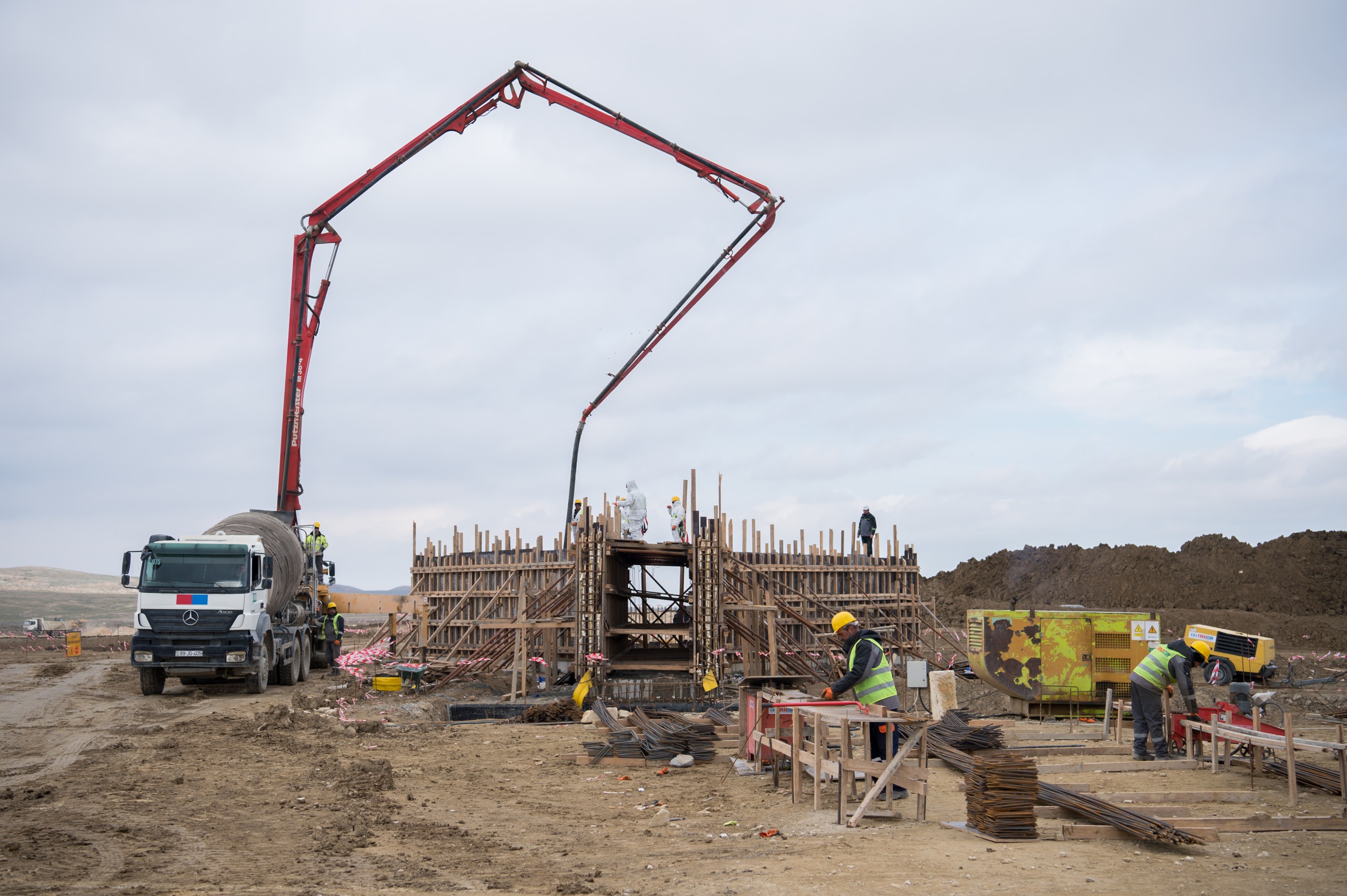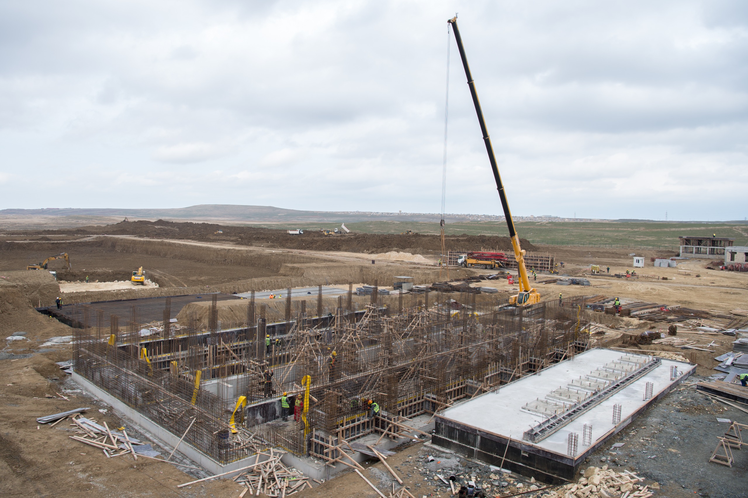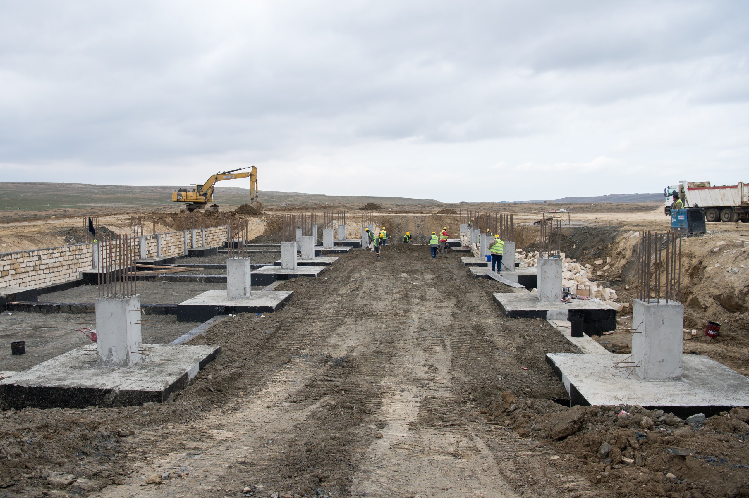 Havalandırma sistemli qum və yağ tutucuda döşəmənin inşası tamamlanıb, divarların dəmir-betonla hörülməsi davam etdirilir.