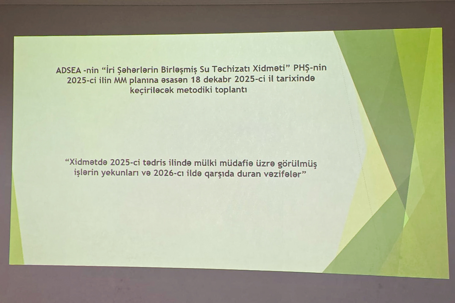 Azərbaycan Dövlət Su Ehtiyatları Agentliyinin İri Şəhərlərin Birləşmiş Su Təchizatı Xidməti “2025-ci ildə mülki müdafiə sahəsində görülmüş işlərin yekunları və 2026-cı ildə qarşıda duran vəzifələr“ mövzusunda tədbir keçirib.